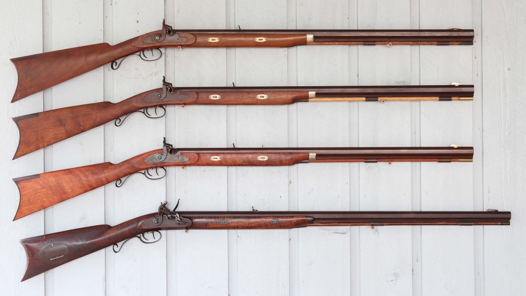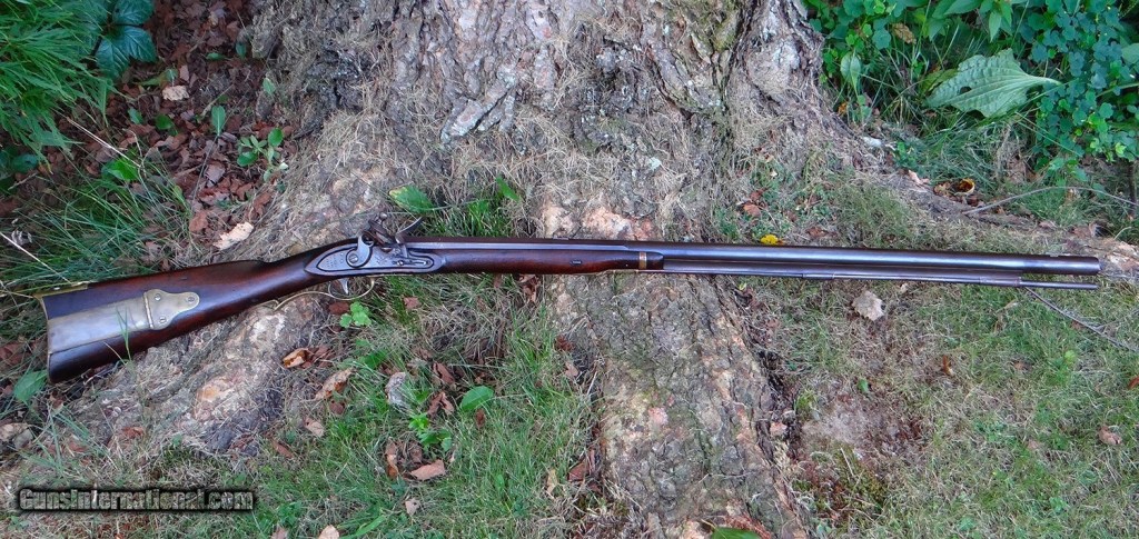 Hawken Rifle percussion lock (after 1835), muzzle loaded, round shot .54 calibre, effective range at 400 yards